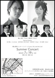 出演 横山慎吾(テノール) 南雲彩(ピアノ) Rayrow Quartet(弦楽四重奏団)